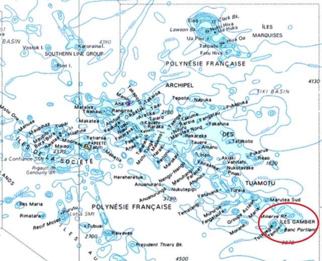 Situé à plus de 1000 milles au sud-est de Tahiti (la distance entre Brest et l’Islande), en prolongement des Tuamotu, quasiment sur le tropique du Capricorne, c’est le plus petit des 5 archipels de la Polynésie française. Le climat est plutôt tempéré, propice aux plantations d’arbres fruitiers. Les Gambier ont une identité propre, différente des autres archipels.