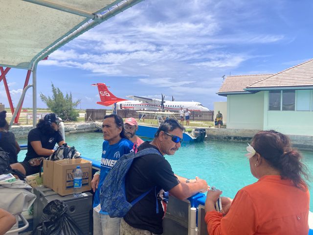 L’archipel est principalement formé des restes d’un immense volcan, complètement effondré au sud avec 14 îles hautes dans le lagon et quelques motus en périphérie. L’aéroport est d’ailleurs sur un motu, Totegegie, et, après avoir atterri, il faut prendre la navette maritime pour rejoindre Mangareva, l’île principale, à ½ heure de navigation dans le lagon. En ce début décembre, les passagers sont principalement des mangareviens.