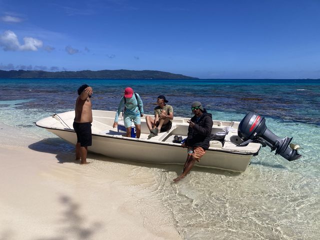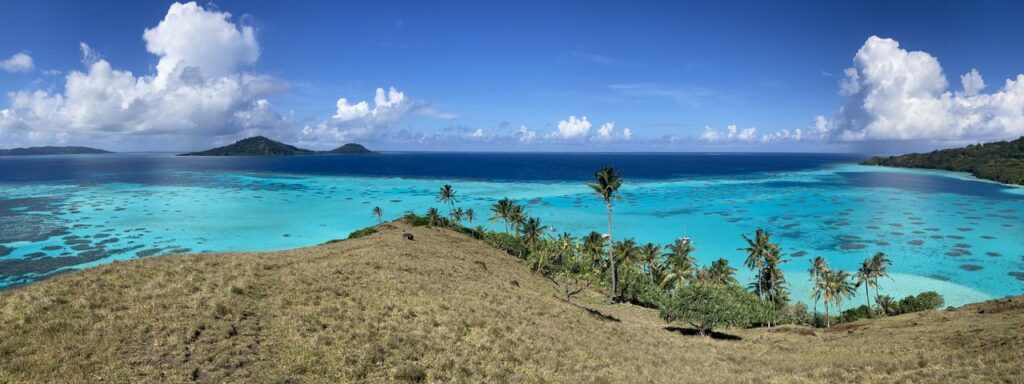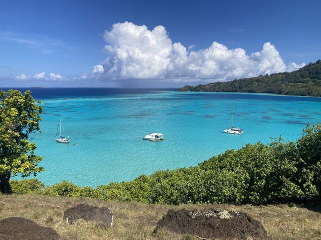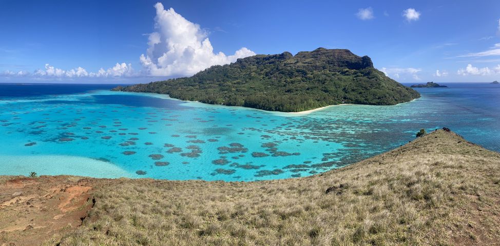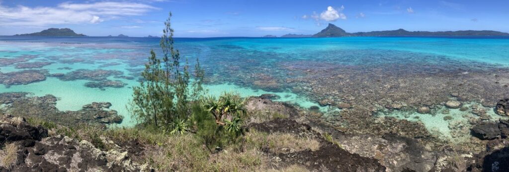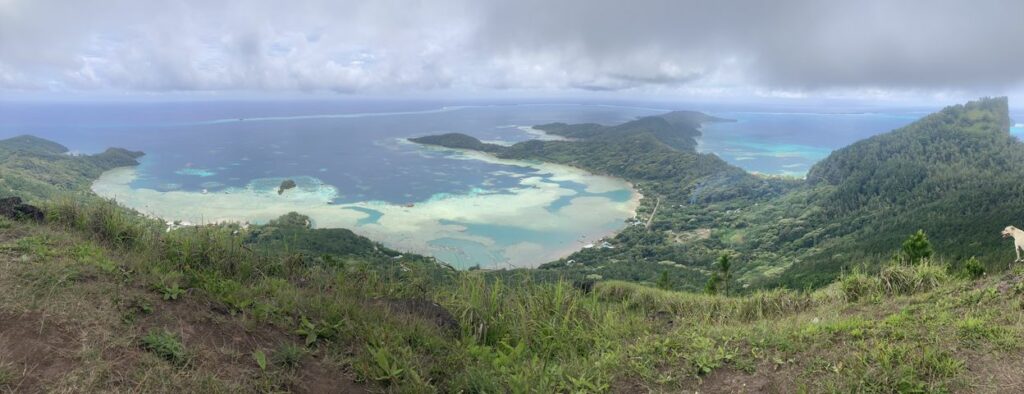 On aborde l’ilot voisin Mekiro pour le déjeuner sur la plage, excellent. Pendant la préparation, on part faire un petit snorkeling dans une eau limpide, beaucoup plus fraiche qu’aux îles de la Société : mais ici les coraux sont magnifiques, très variés et les poissons nombreux. Un chemin part de la plage pour rejoindre le sommet de Mekiro et sa vue panoramique sur le lagon.