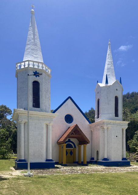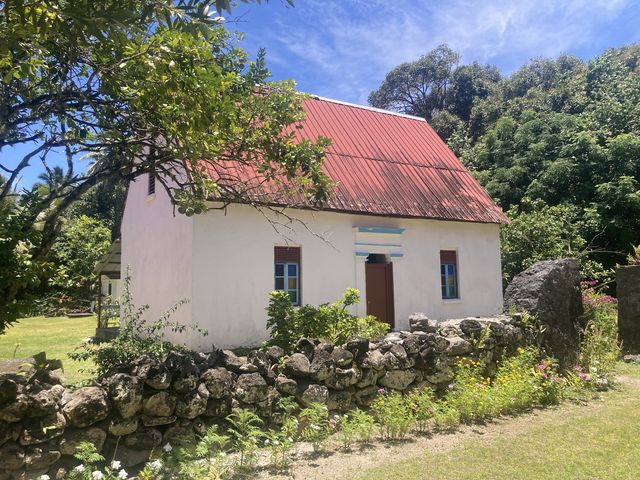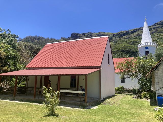 Premier stop à Aukura. C’est la première île où s’est établi le père Laval, l’un des principaux missionnaires qui a régné en despote pendant 30 ans. L’église Saint Raphael a récemment été restaurée.