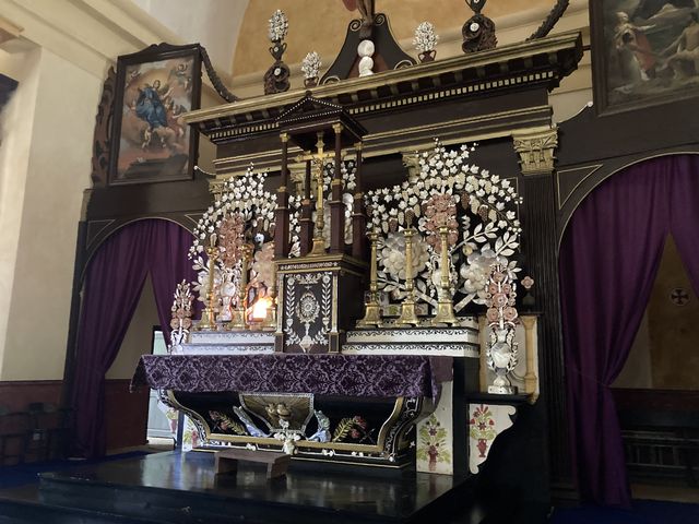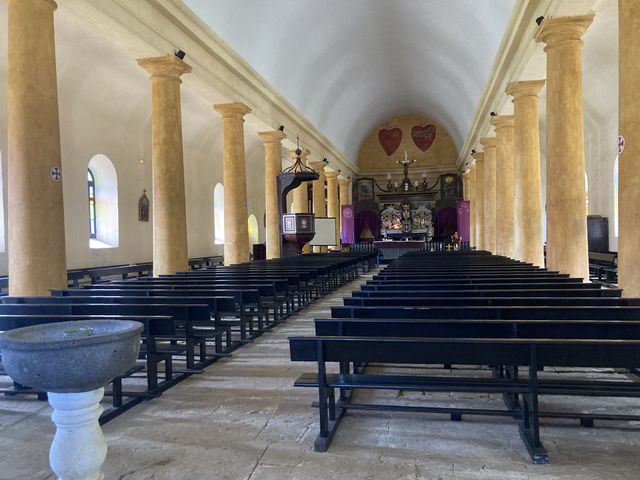 Le lendemain de notre arrivée, c’est dimanche et la messe à la cathédrale Saint Michel est incontournable. Consacrée en 1841, après 4 ans de travaux seulement, sa nef peut accueillir plus de mille personnes!. Elle est richement décorée en nacres du lagon.