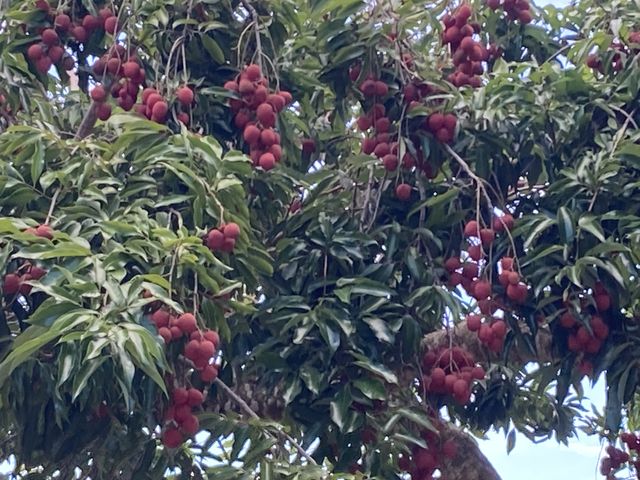 A Rikitea, on trouve, outre les bâtiments publics, un important collège, des petits commerces, des snacks, quelques magasins d’artisanat, le plus souvent chez l’habitant et des maisons bien entretenues, aux jardins magnifiques. C’est la pleine saison des litchis, et les arbres croulent sous les grappes.