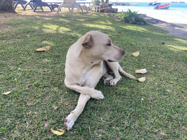 C’est de la pension que nous visitons l’île à pied de fond en comble, précédés de Golden et d’une meute de chiens qui le suivent.