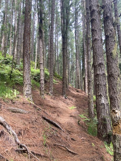 Le sentier traverse des forêts magnifiques de pinus et de gigantesques falcatas.