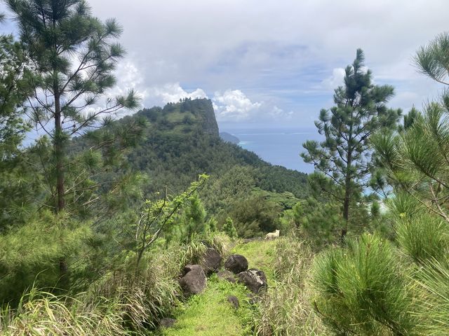 Nous profitons des derniers jours de ce côté de l’île pour quelques premières randos. Un beau sentier coupe l’île en croix, SW – NE sur la crête, SE – NW en traversée. Il s’agit d’un sentier historique, qui date des premiers peuplements.